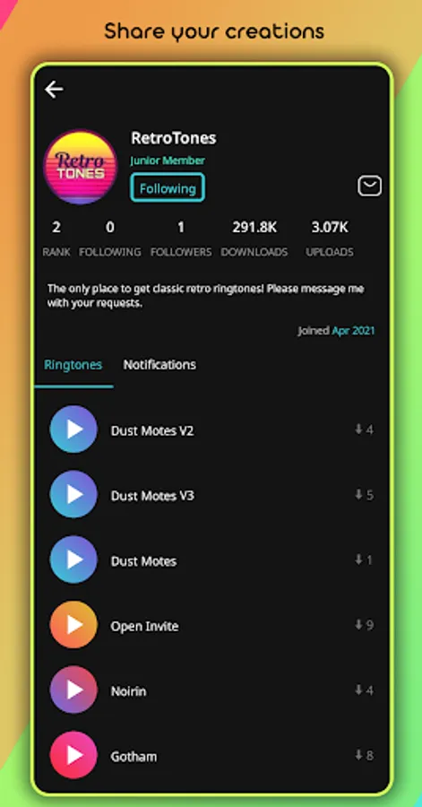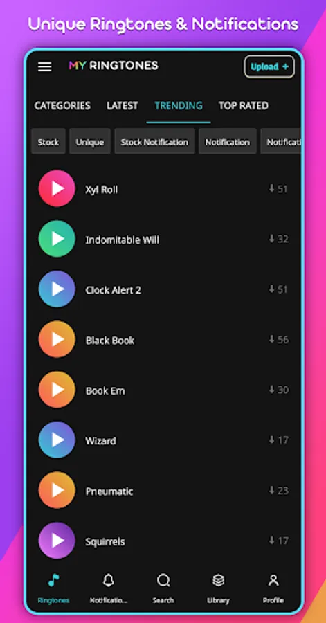 MY RINGTONES & NOTIFICATIONS brings you a vast collection of unique ringtones & notification sounds for your Android™ phone, completely free. Browse and download a variety of music ringtones and trending melodies, made by our talented Creators. Download, like, share and follow your favorite music and Artists.