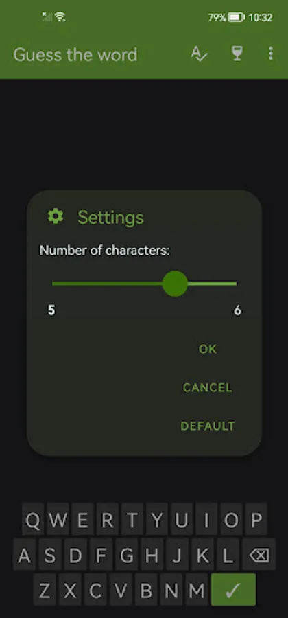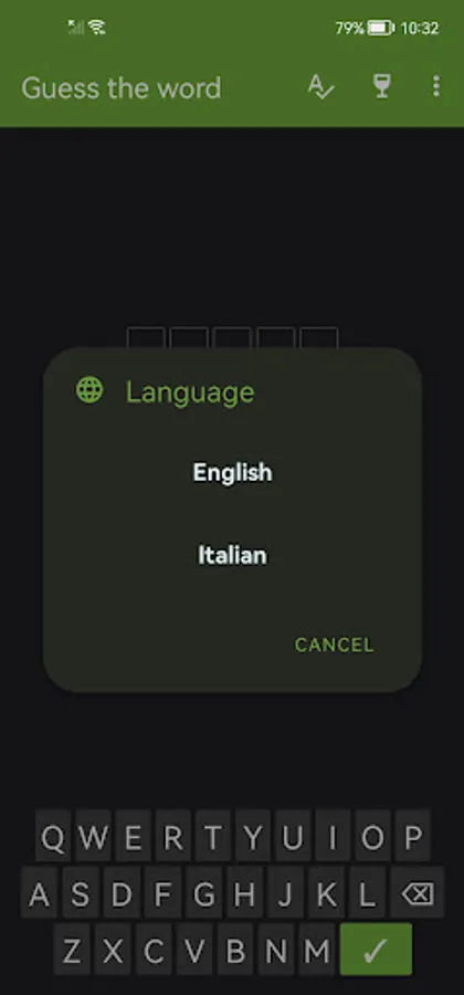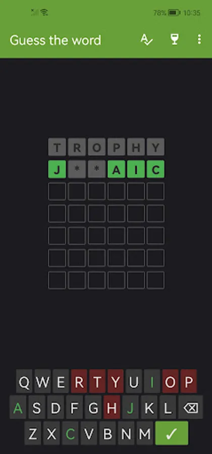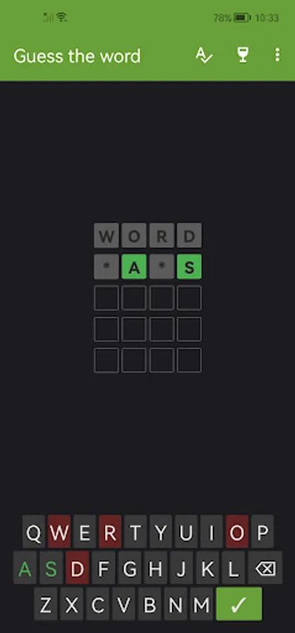 Click on "✓" to confirm it or on "⌫" to delete the letters entered.