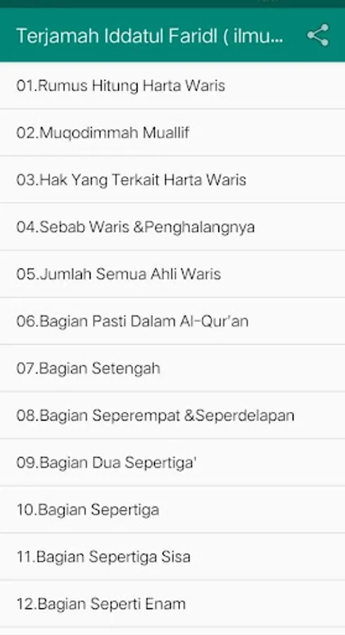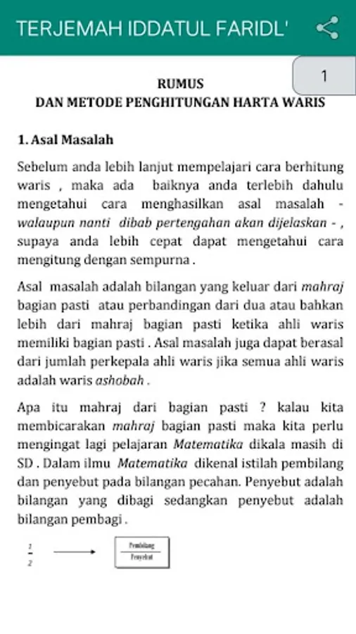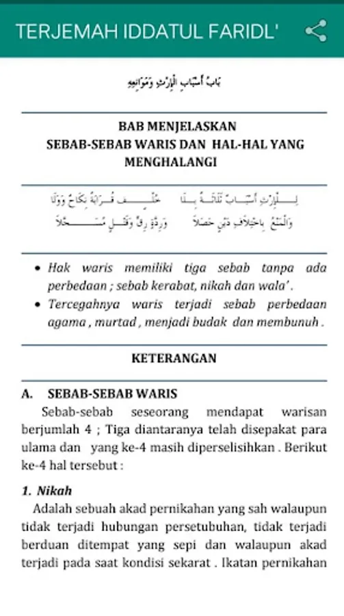 The translation of iddatul faridl (knowledge of inheritance) is a book that has been popular among Islamic boarding schools.