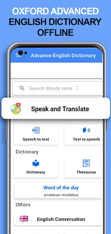 The free advanced English to English Dictionary application with updated features, meanings, simple definitions for easy understanding. With fast search, easy user interface & user experience, optimized for all android devices. Download now advanced English dictionary and Translator app with English Phrases, Grammar & daily conversations.