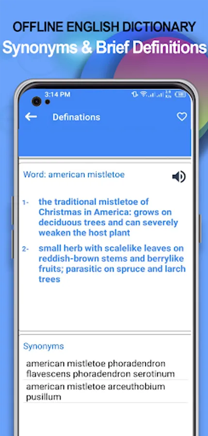 English to English dictionary contains more intuitive design with fast search, so you can translate words, as well as save favorite words, check history of most recent words, English thesaurus, with a convenient home page.