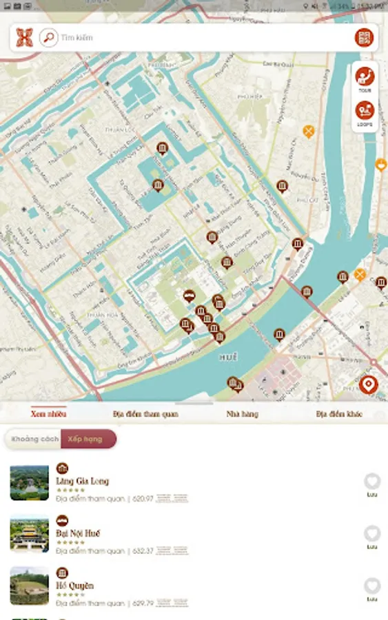 - Shows you the location of all the places in Hue including sightseeing attractions, hotels, restaurants, ATMs, gas station, shops…