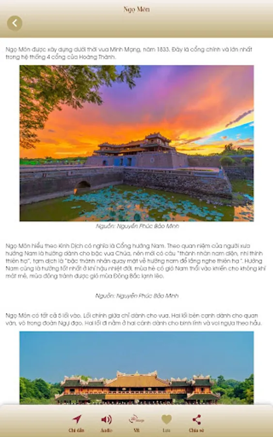 - Provides you with the information of each point of attraction (images and audio, description, historical background, distance from current location, open hours, reviews and comments)