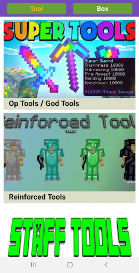 Toolbox is a launcher/modification for Minecraft: PE (MCPE) that allows you to give yourself items (just like in the popular Too Many Items modification), potion effects, enchant items, see valuable blocks using a special mode called X-Ray, and much more!