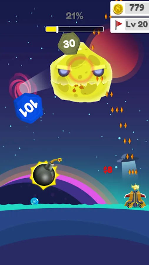 • Spend coins to unlock new canons with power and speed boosters