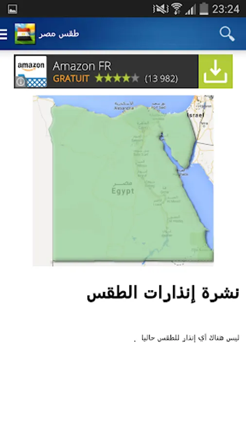 Egypt Weather -Arabic- app provides accurate weather forecasts (wind, humidity, ephemeris, alerts) cities in Egypt for seven coming days.
