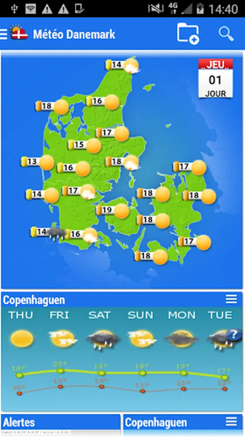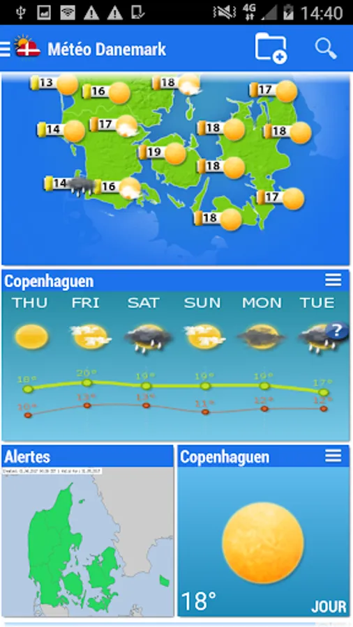 Denmark Weather app provides accurate weather forecasts for all Denmark cities.( Copenhague, Århus, Odense, Aalborg, Esbjerg, Randers, Kolding, Vejle, Horsens, Météo Herning, Roskilde, Greve, Næstved, Silkeborg, Fredericia...)