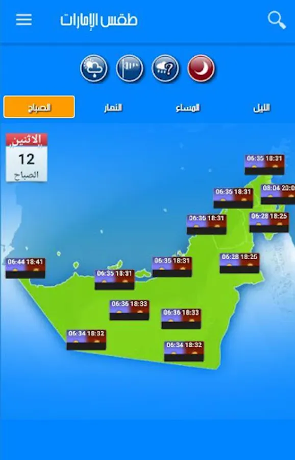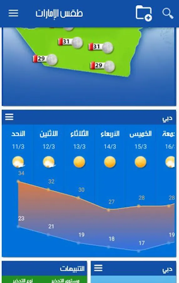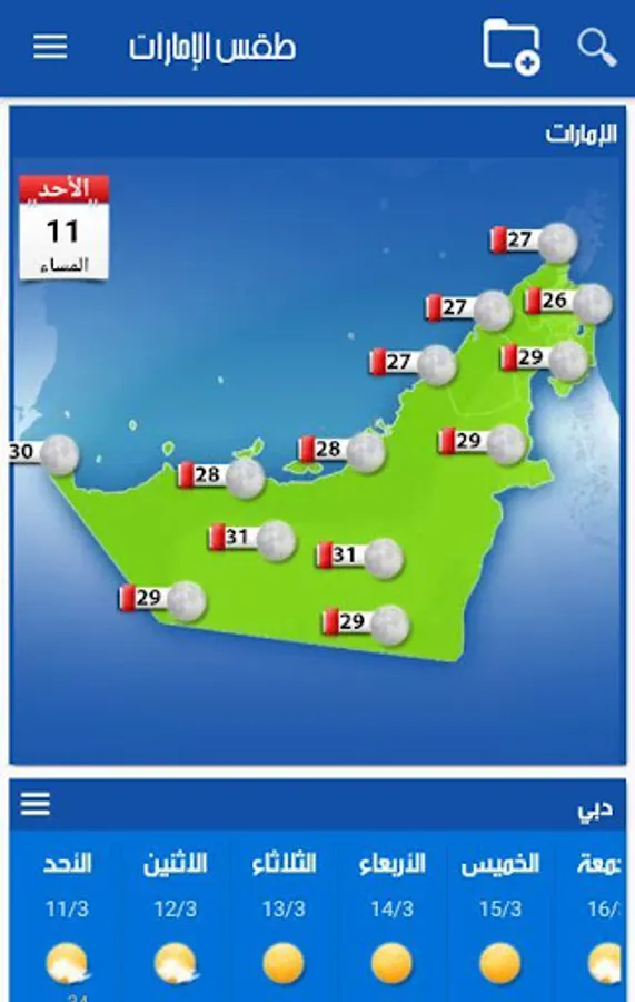 UAE Weather app provides accurate weather forecasts (wind, humidity, tides, solunar activity, ephemeris, alerts) cities in UAE for the coming week.