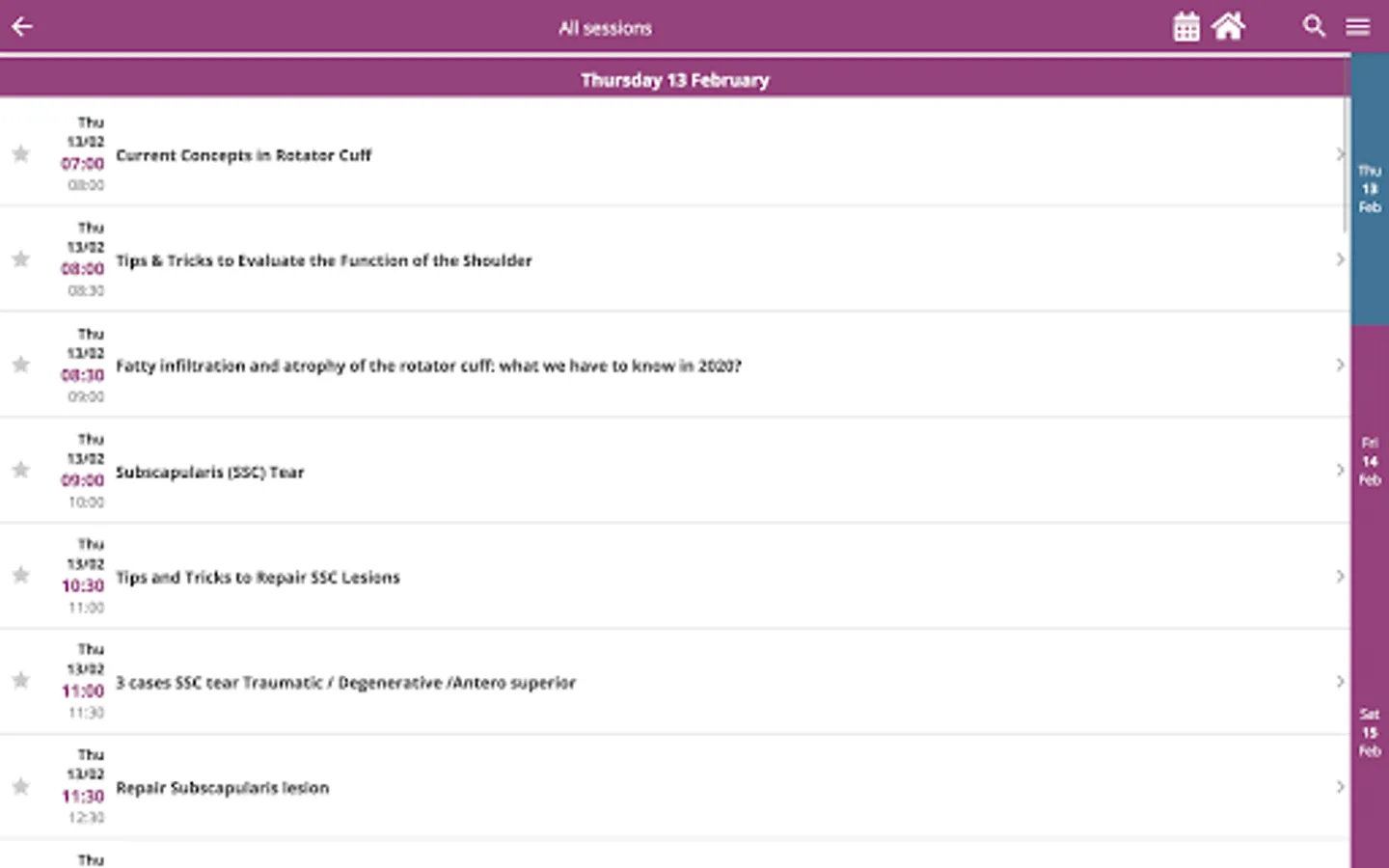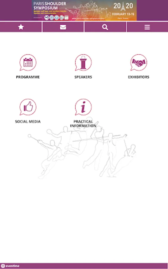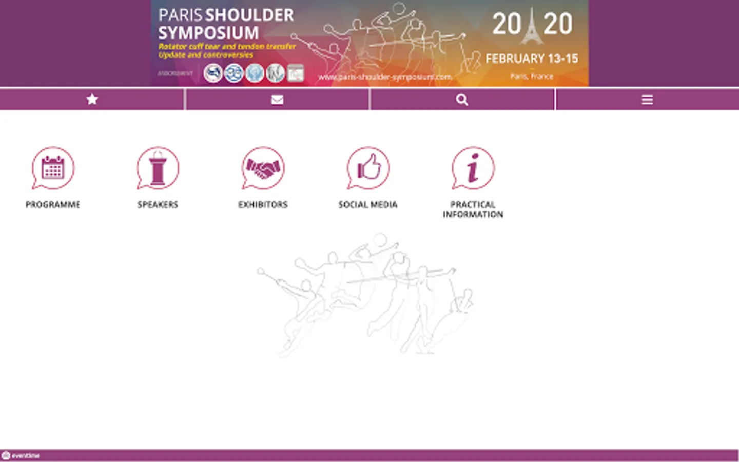 This app is meant for the participants of the Paris Shoulder Symposium 2020 which will take place February 13th to 15th, 2020, at Marriott Hotel Rive Gauche, Paris, France. It is meant to give the user meaningful content related to the congress such as the full programme, speakers, exhibitors and practical information. The app is public and is for all participants of the event : visitors, exhibitors, press, etc.
