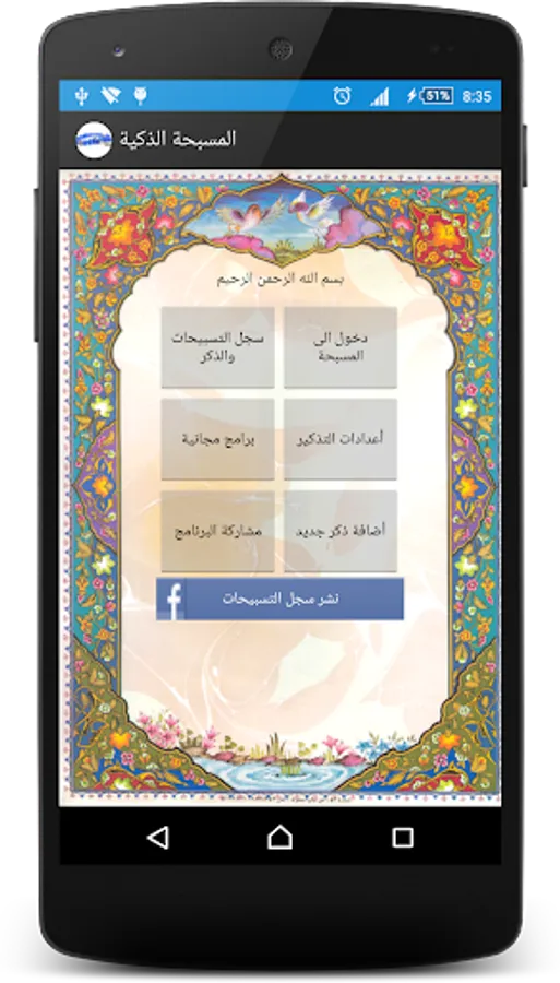 Smart Rosary first program in the world induce you to compete with your friends in the remembrance of Allah Almighty through praise and male and store the number of praises and supplications The program was to link with the social networking site Facebook so you can publication and competition and also smart rosary help you praise everywhere, a versatile you can choose the male and the number of repetitions and then start numbers and you can also masculine property even mentioned in praise and remembrance at specific times, praise and seek forgiveness and blessings on the Prophet peace be upon him is one of the most beloved of deeds to God.