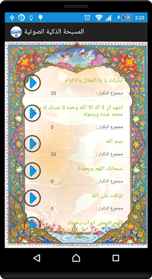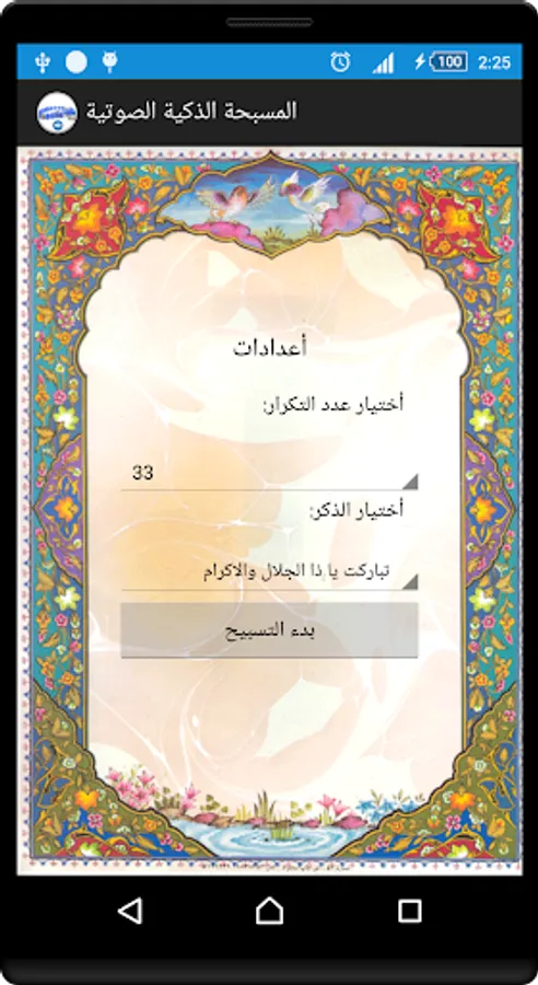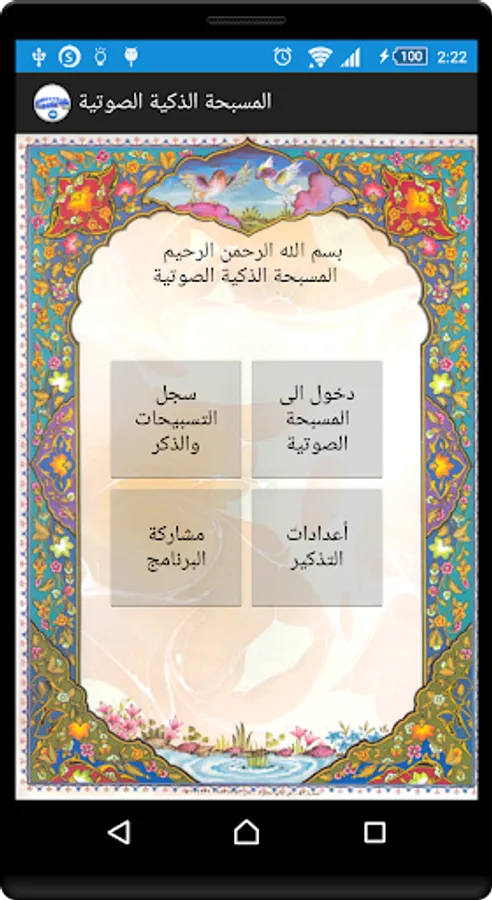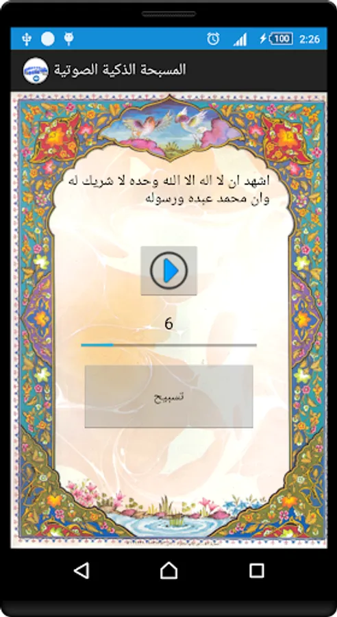 Smart rosary acoustic first program in the world motivates you to compete with your friends in the remembrance of Allah Almighty through praise and remembrance and store the number of praises and sound instruction and dhikr and also smart rosary help you praise everywhere a versatile you can choose the male and the number of repetitions and then start and you can also numbers of property masculine even mentioned in praise and remembrance at specific times, praise, and seek forgiveness and blessings on the Prophet (PBUH) is the business of love to God.
