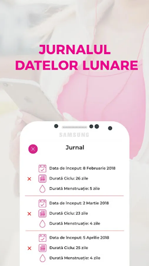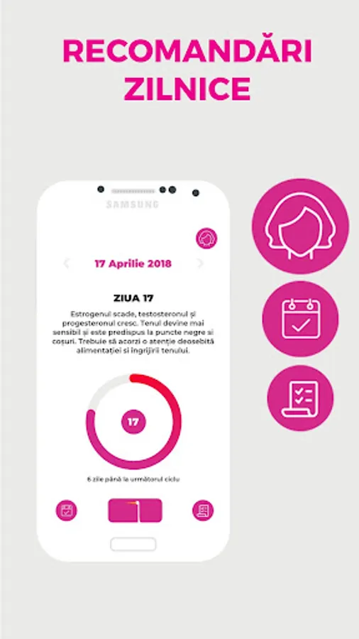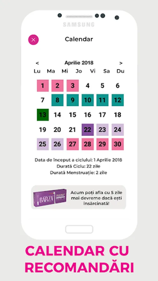 - it enables you to set the time of menstruation and shows you possible changes that your body goes throughout the menstrual cycle;