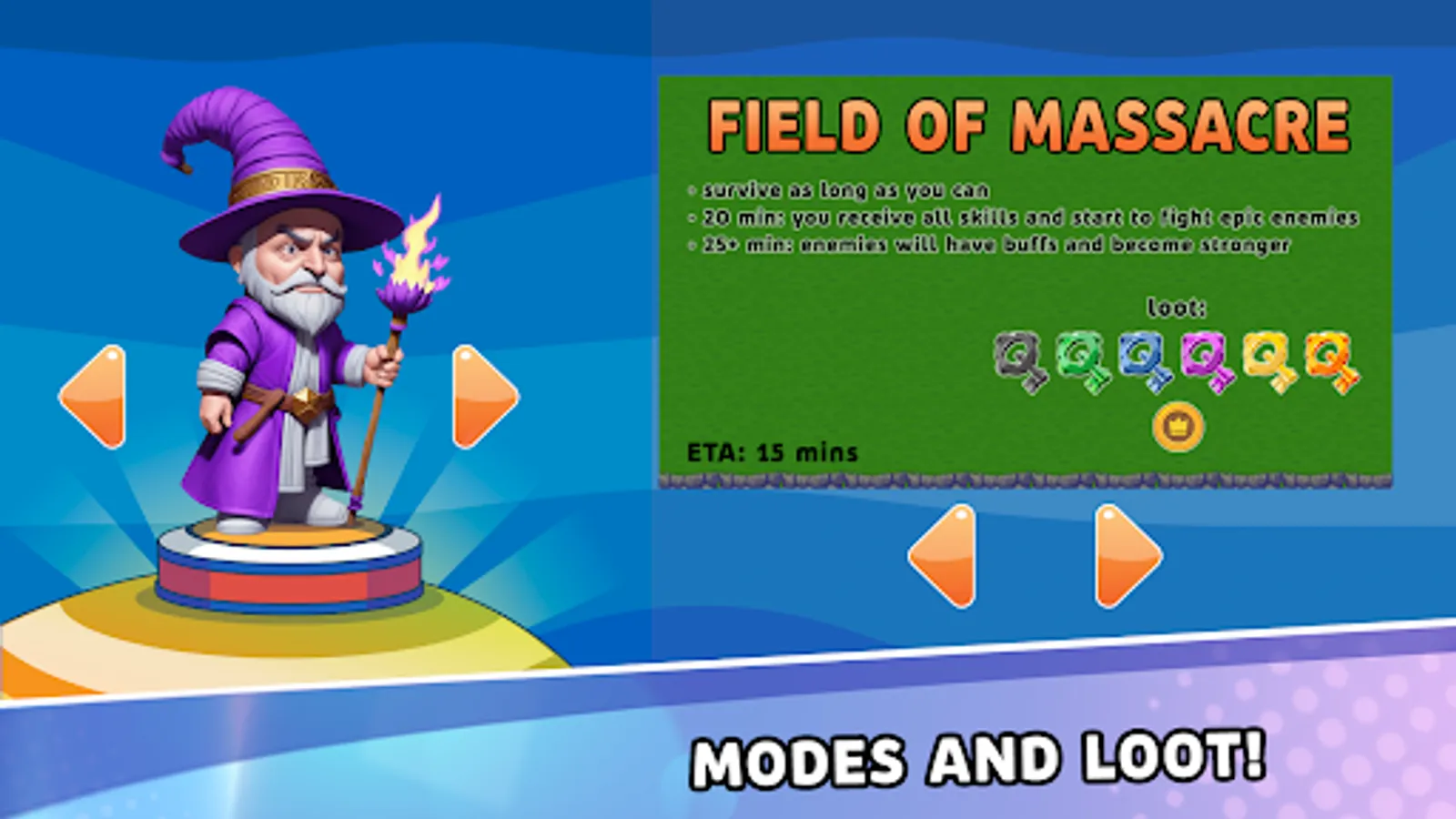 - Survive up to 20 minutes and defeat mighty monsters, mini bosses!