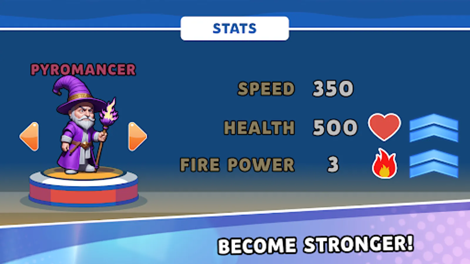 Stats and magic power of your survivor can be boosted. It will help you to destroy that vampire waves even more effective. Roguelike style will give you opportunity to feel the progress every game.