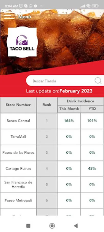 Incidence Drink Report: is a business application that allows you to monitor the incidence rate of drinks at the store level. It generates a report trend of the last three months and estimated additional or captured in relation to income goals. Report available for operations Honduras, El Salvador, Costa Rica and Panama only.