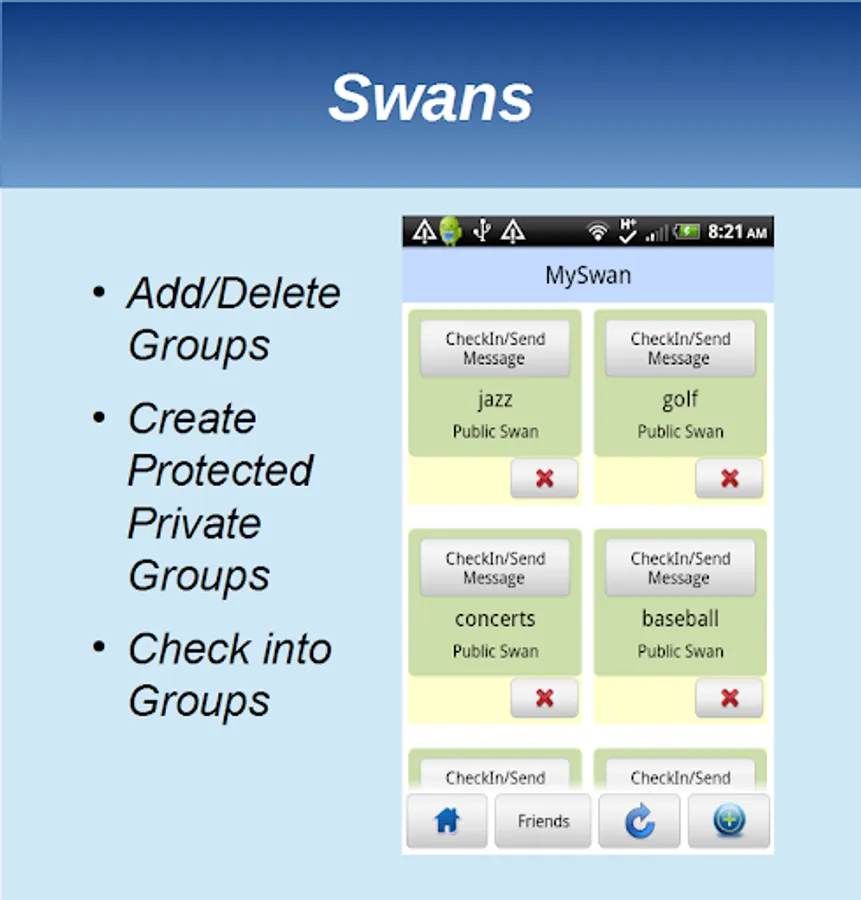 MobileSwan (Social Wide Area Networking) is a Crowd Sourcing application.