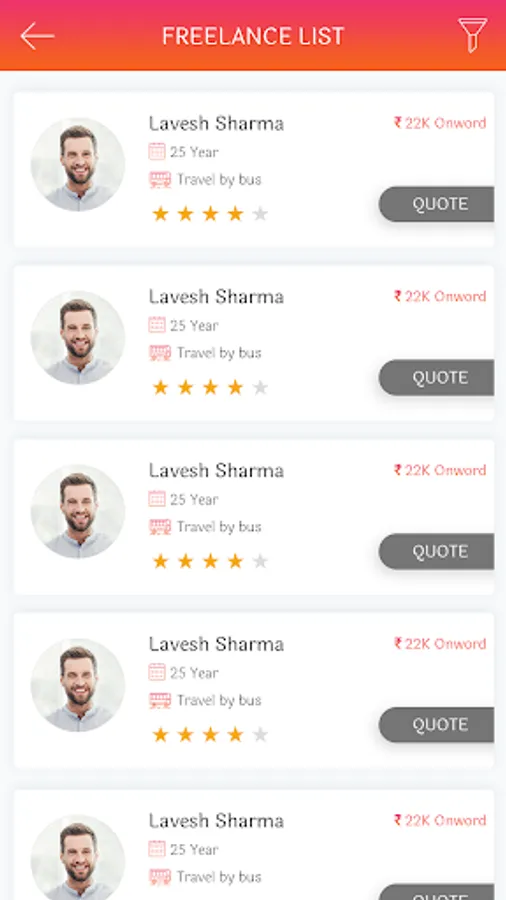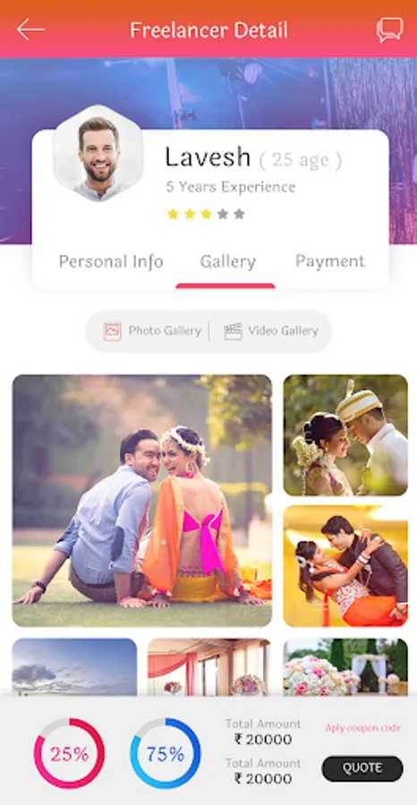 Search freelance photographer anywhere in the world. Get a list of photographers nearby, know the cameras used, see photographers gallery, know photographers availability, rate of exposing and you can contact directly or through the chatting function in the app.