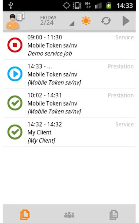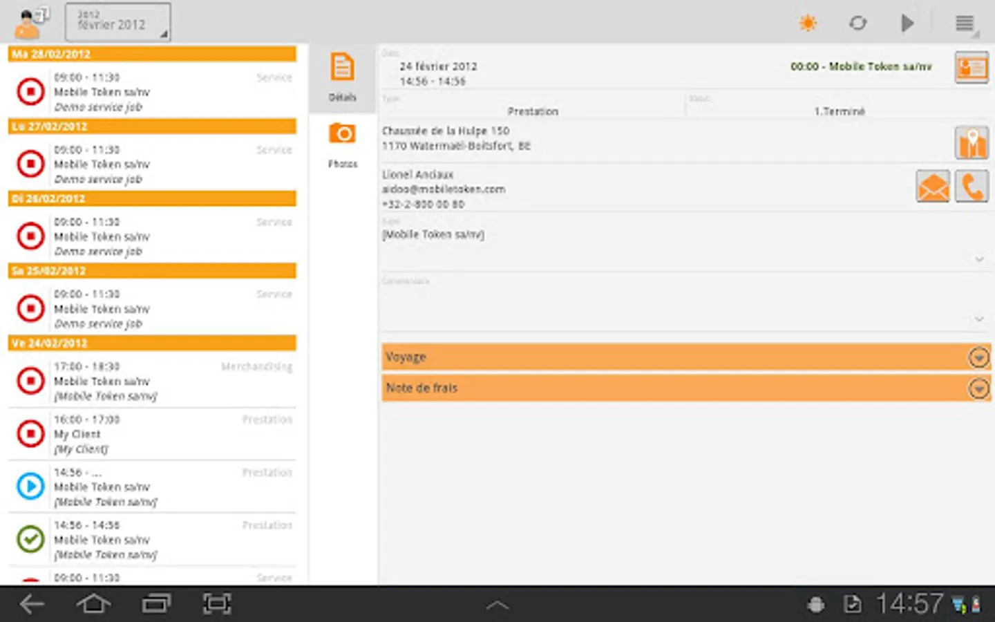 -Time Tracking: With a simple click, you indicate when you start or stop your work day, and when you begin or end a service. You encode the kilometers traveled. You create your roadmap, which is indispensable for entering a fee note, invoicing your clients and simply keeping track of your work day.