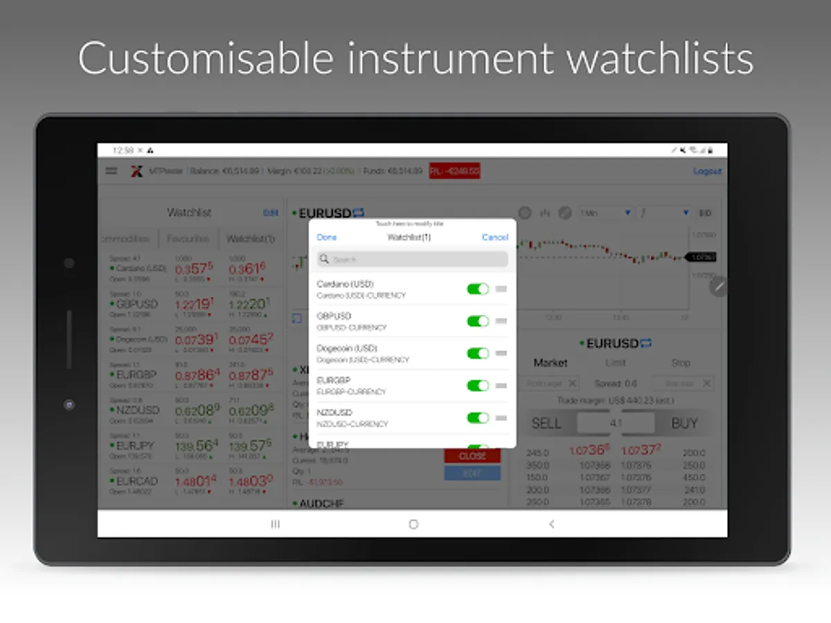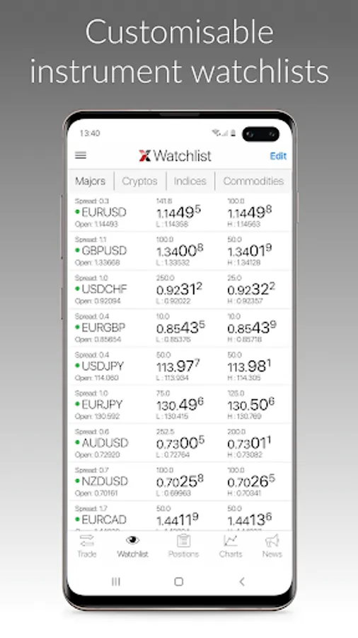 - Monitor key markets, with real-time prices, via your own customisable ‘Watchlist’