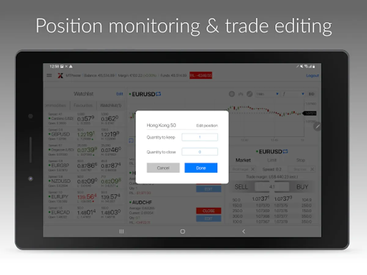 - 1-click trading, close and cancel or partial close position
