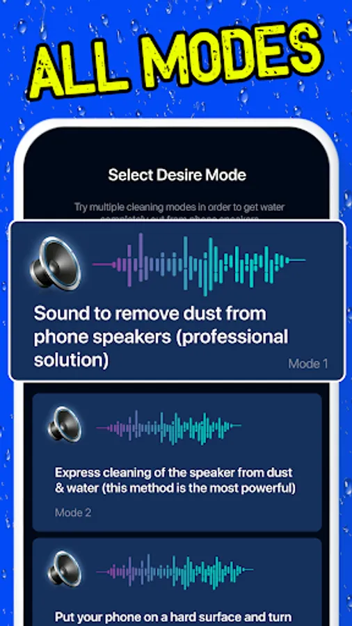 Microphone cleaner and Headphone cleaner modes are built-in in this Speaker cleaner app and dust cleaner app too. Water Speaker is an automated process of removing water from the speaker. With just one press of the button, your speaker will be fixed in 80 seconds. There are also two modes of auto cleaning, so be sure to try them both if one doesn't work.