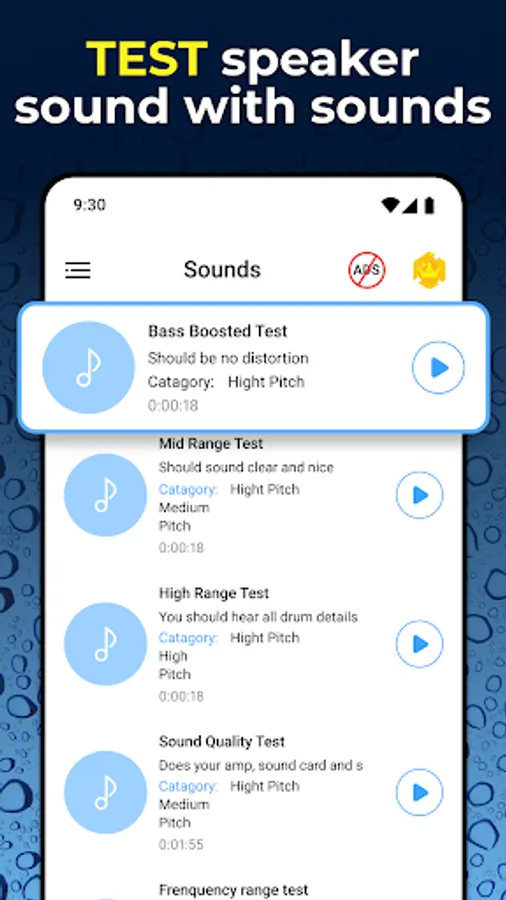 In addition to its powerful cleaning capabilities, Speaker Cleaner includes different sounds to test your speaker after cleaning. These sounds will help you determine if your speaker is clean and free from liquid damage.