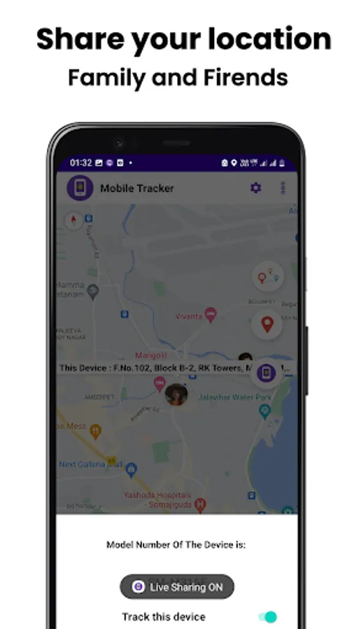 Track Your Friends or family-members live location on the map.