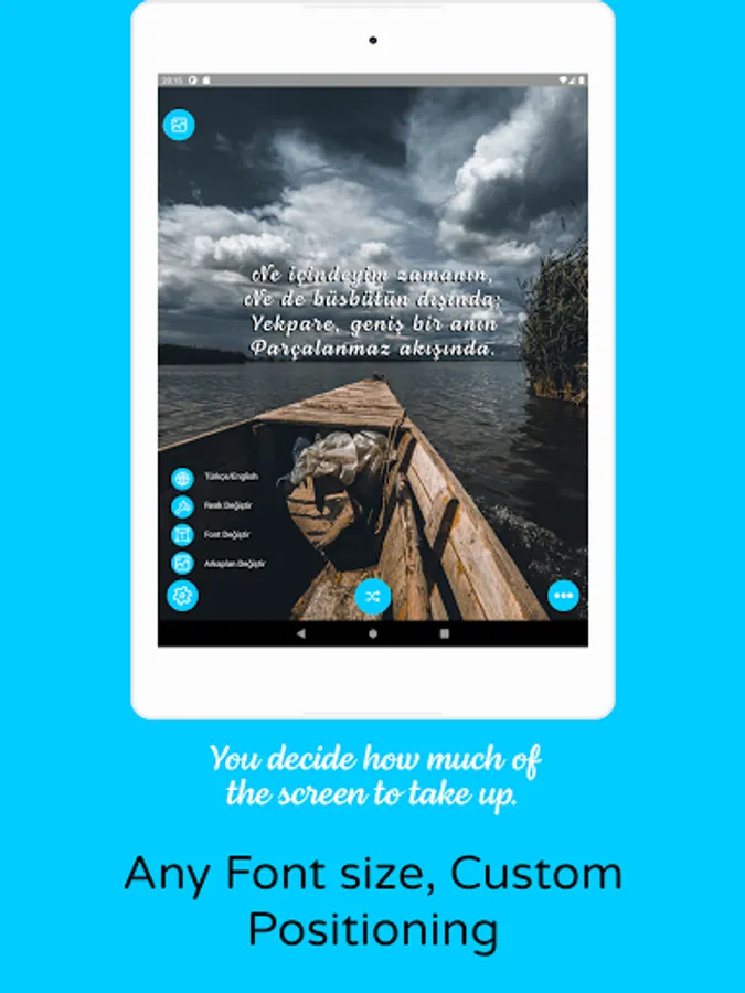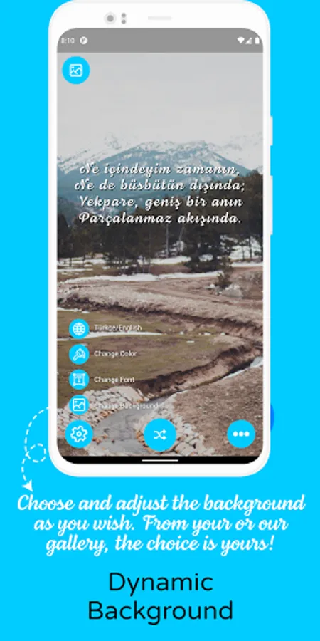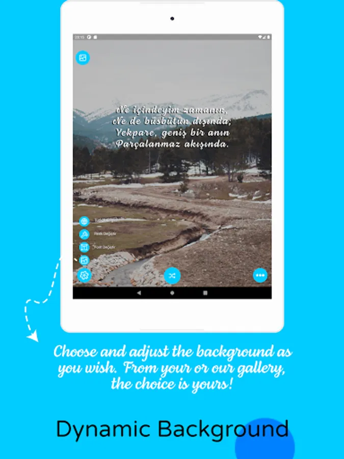 Choose and adjust the background as you wish. If you want a picture you like, a landscape you took, a photo you have recorded, a frame from you or one of the beautiful photos in the visual gallery we have prepared for you. The choice is yours!