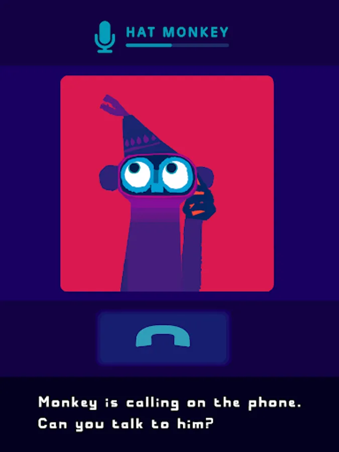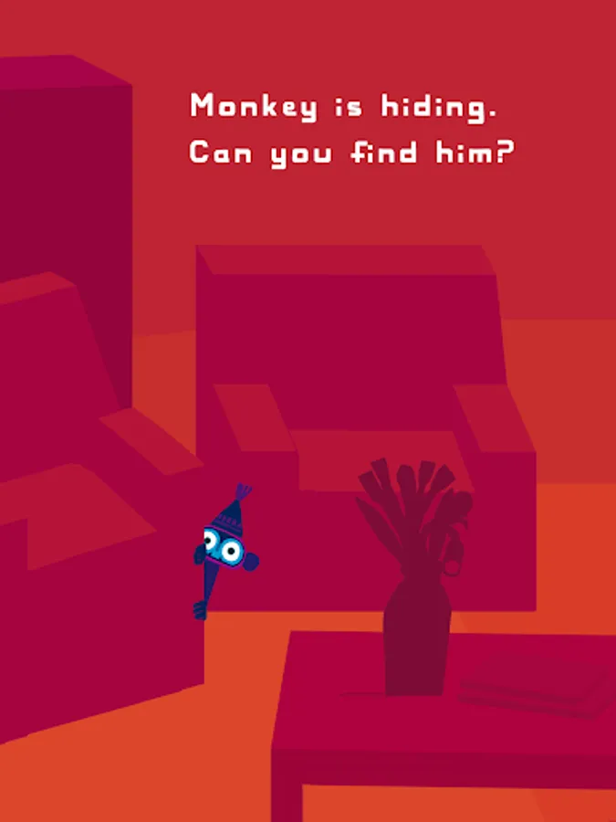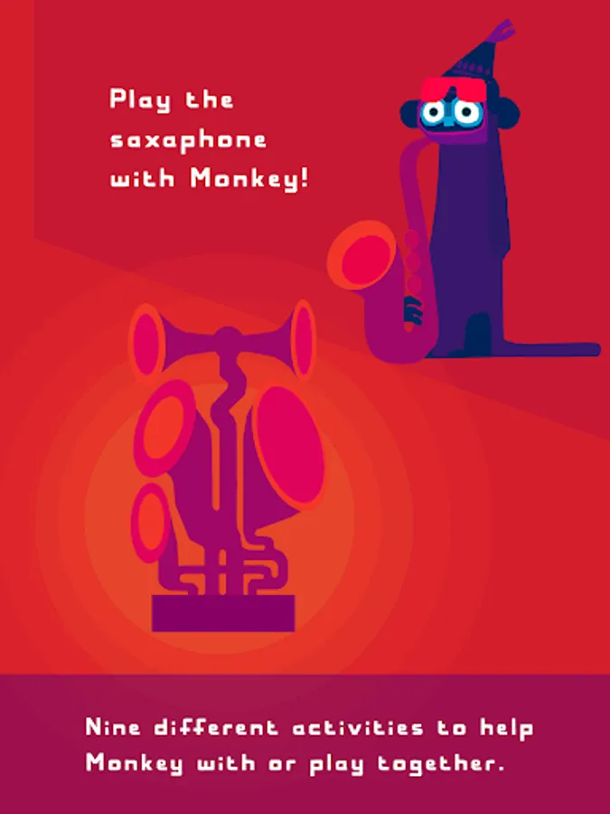 Hat Monkey is a small monkey with a hat who needs our help around the house. Young children will find the objectives satisfying as they help Monkey do everyday things they cannot yet do themselves, like turning off lights, opening the door for him, turning the pages of his bedtime book or sending text messages. They can also speak with him on the phone, and play music or simple games like hide and seek. The beautiful simplified graphics and interactions allow even the youngest children to identify what Monkey wants, to empathize with him, and learn how they can help him.