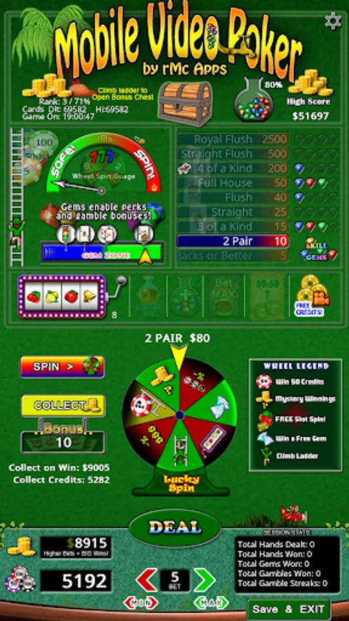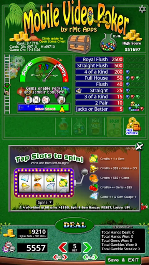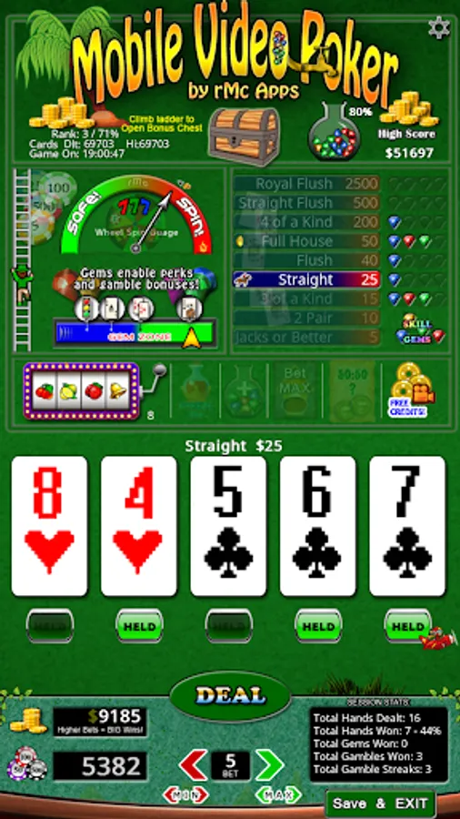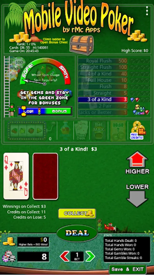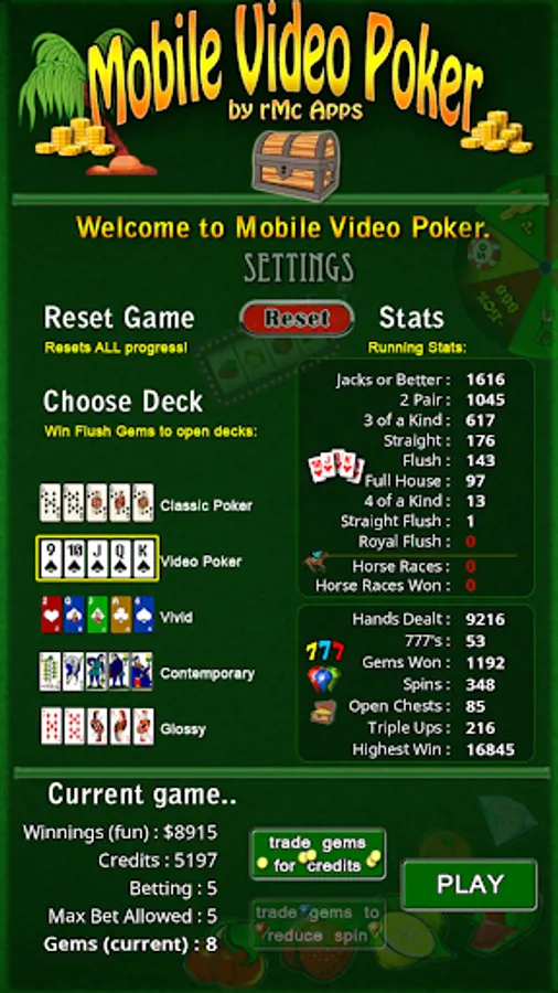 Progress is saved on exit, or you can do a full game reset if you wish to start your Video Poker session from scratch again.