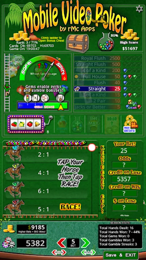 - Gem Guage Skill bonuses such as Ace wilds on hi-lo etc