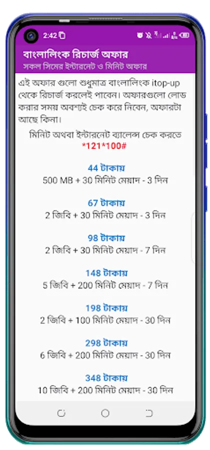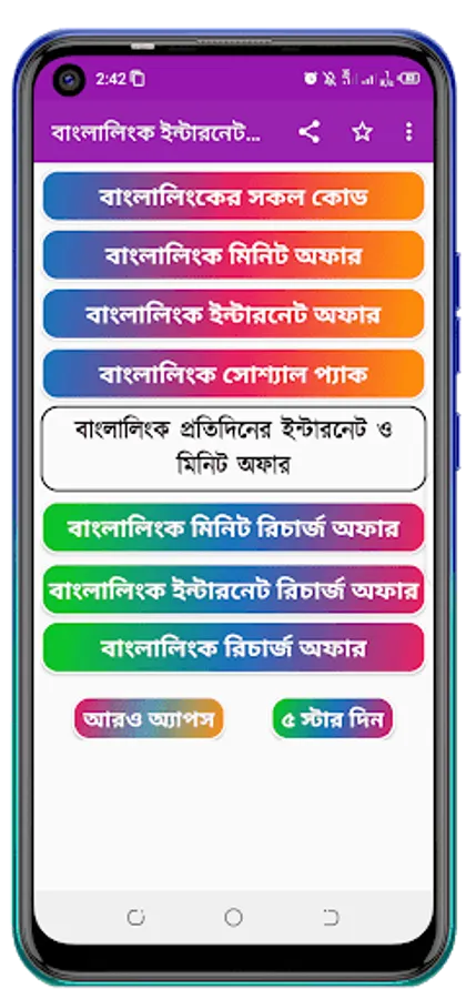 The app is mainly for those who have Banglalink SIM users. Through this app you will get all the necessary codes of Banglalink. You can see all internet and minute offers of Banglalink with codes. Moreover, you will get all internet and minute recharge offers of Banglalink. Hope this app will help you in using banglalink operator sim.