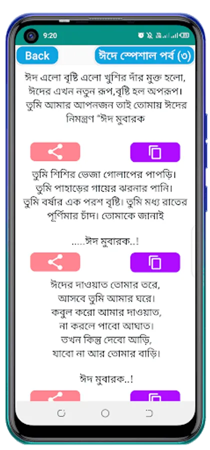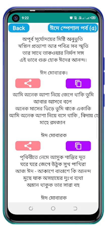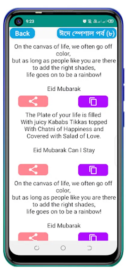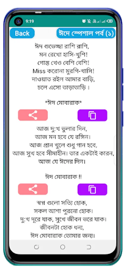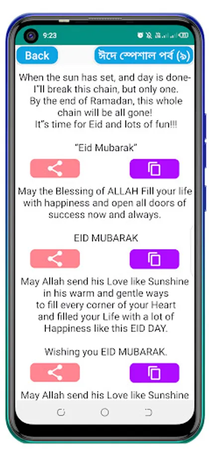 Eid means joy Eid means happiness! And to spread this joy or happiness among all, Eid SMS is needed. So we have brought all the best Eid SMS in this application. You can easily share the SMS with your loved ones or your friends. Hope the SMS will help you spread the joy of Eid to everyone.