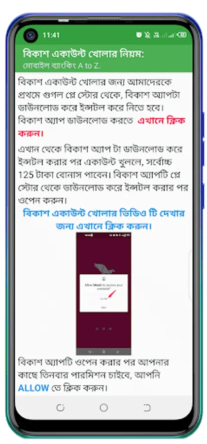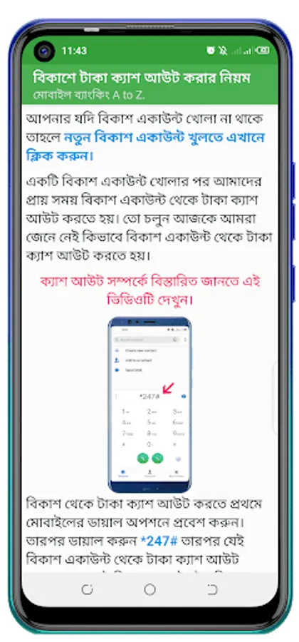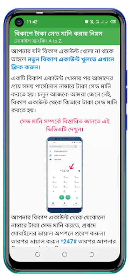 Like how to open a new bkash account or register bkash account. How to send money from Bkash account. Mobile recharge and cash out, all these services are provided in this app.