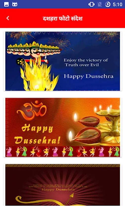 Dussehra contains mp3(Audio) so you can listen as well as read the untold story of Ravan. You can also enjoy real-time animation(Bell move, Flower Animation and other).