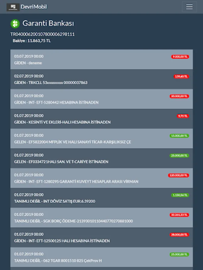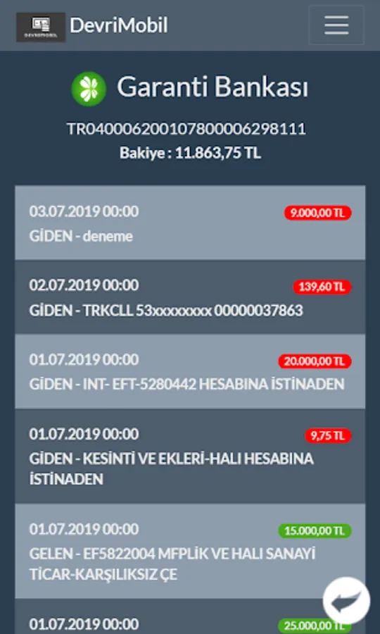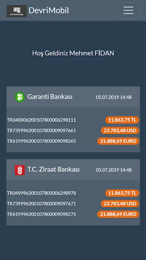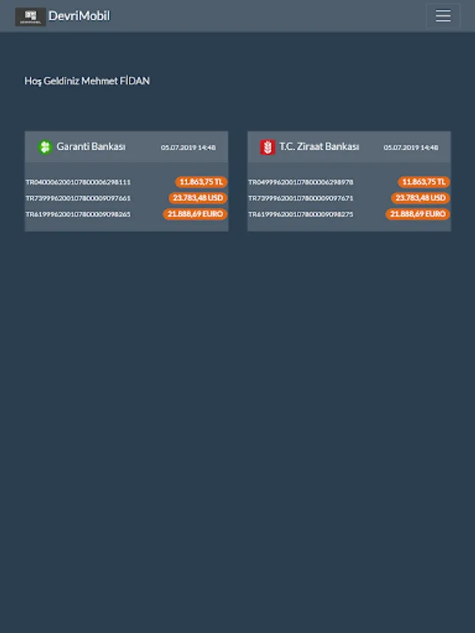 You can follow all your bank accounts from a single application. You can view the status of your consolidated accounts without entering your bank accounts. You can examine the details of the movements if you want. It saves time with ease of access and use. You can view all your TL, $, € and other currencies in your bank accounts, futures and demand accounts in one screen.