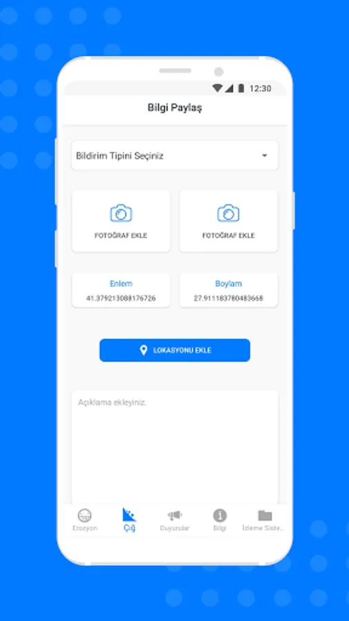 • Will be able to contribute to the verification and updating of the map by sharing pictures and opinions with us for the area where it is located. The evaluation cannot be made in terms of data health without going to the location. Opinions will be obtained again on other issues related to water erosion at the location.