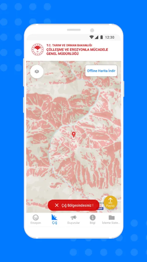 It is designed to present Water Erosion, Wind Erosion and Avalanche Maps produced by the General Directorate of Combating Desertification and Erosion to our citizens.
