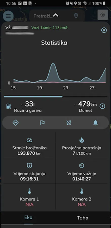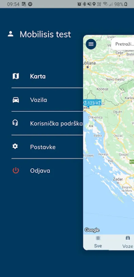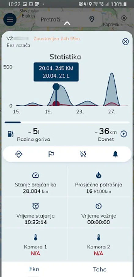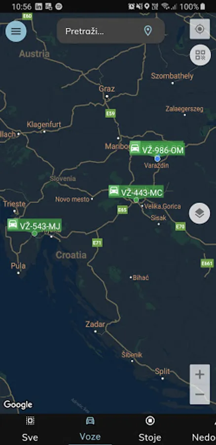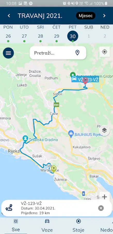The app serves as an aid to dispatchers so they can track their vehicles. Vehicles can be tracked in such a way that the map shows the route traveled by a particular vehicle on the desired day. Also, in addition to displaying the route, the user can generate a route to the selected position by selecting the vehicle and pressing any location on the map (or pressing another vehicle). The user can filter vehicles by status (standing, driving, unavailable, ...)