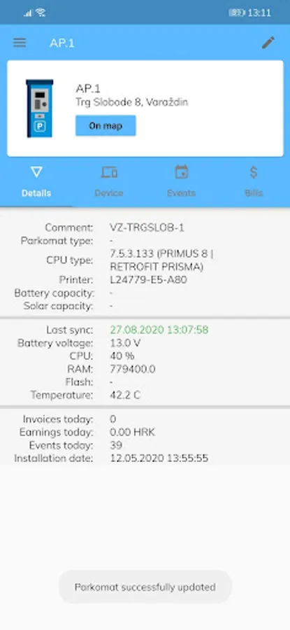 Mobile (Android) application for Fiscalization module. Contains parkomat report, parkomat details, bills, events.