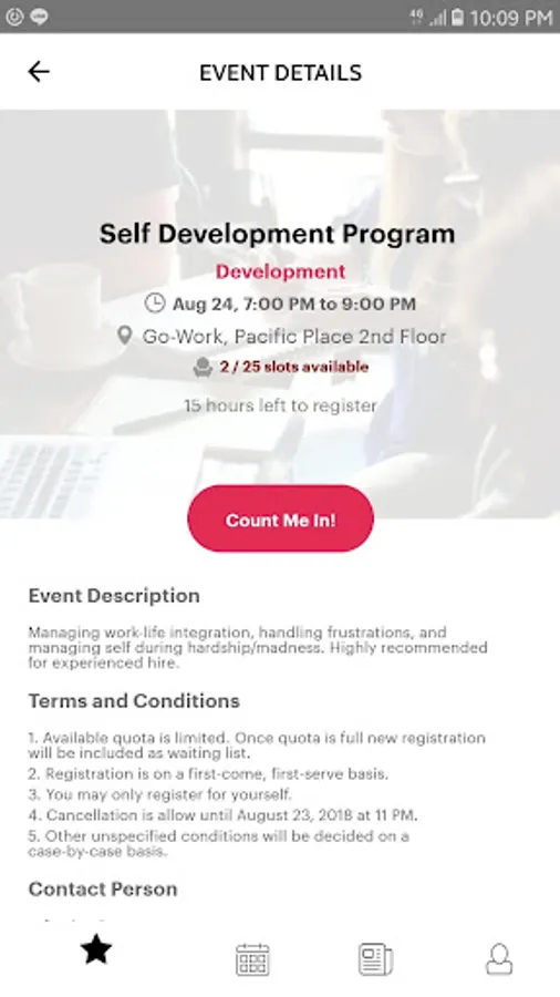- Secure yourself a seat on the events you're interested in. Registration made simple!