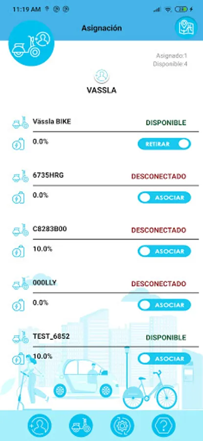 • Evaluation of the state of your vehicles (In use / Available / Disconnected / Battery)