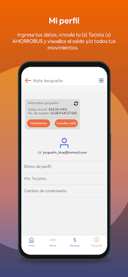 Now you can recharge and check balance from the app in real time from your cell phone and thus avoid loading cash. You can also view all the information regarding your trips, routes, stops and frequent schedules.