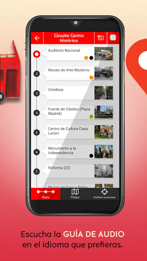 In the Explore section, you can now choose the circuit where you are going to see the next places of interest and listen to our audio-tour that will inform you about where you are.