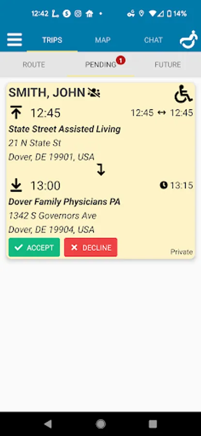 Mobility Route is a platform for non-emergency medical transportation (NEMT) providers to handle their fleet's daily operations. This mobile app is used by drivers to properly log and keep their dispatch updated in real-time on the rides they perform.