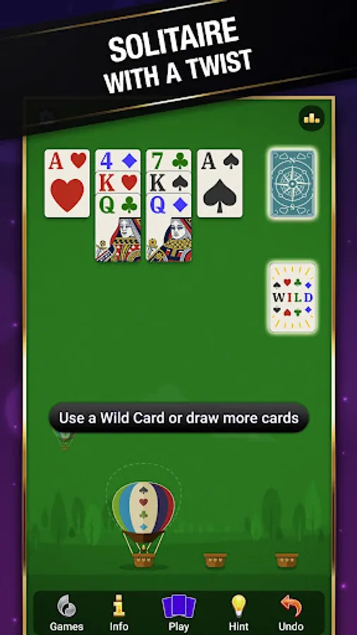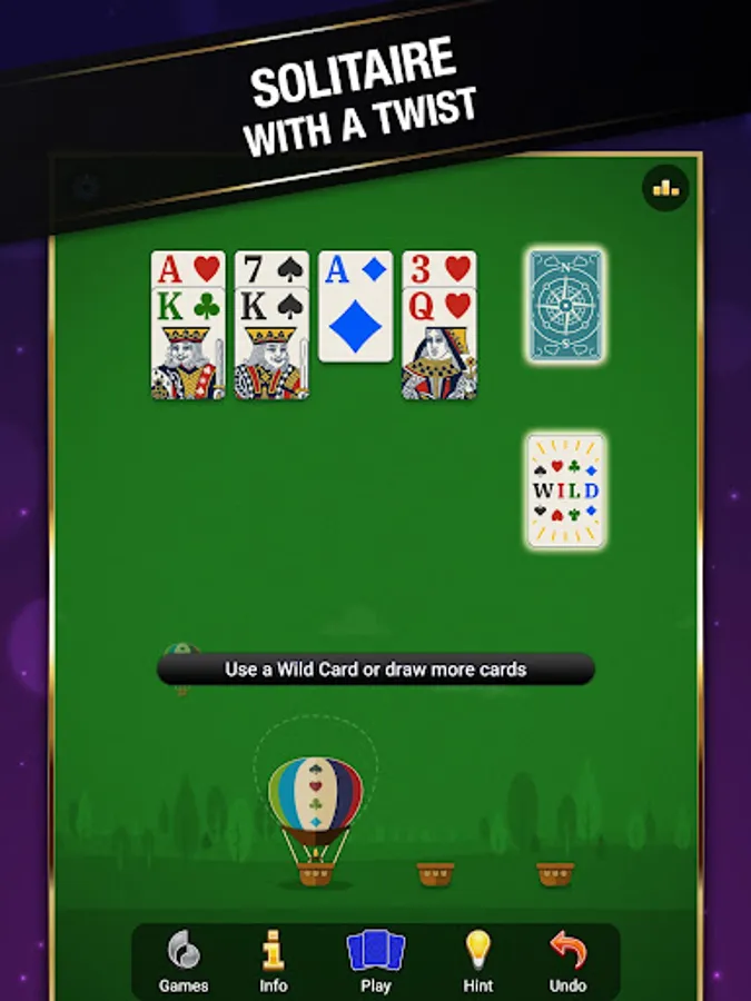 Earn wild cards by clearing the cards from the game board. The wild card allows you to discard any card from the game. Each game, players can earn up to 3 cards. Wild cards help avoid situations where you get stuck and have no moves to make! No one wants to be dealt a hand they can’t win. Each wild card you save grants additional bonus points for that game.