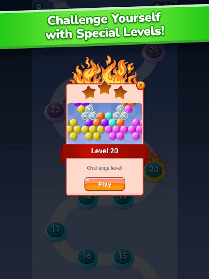 Train your brain and hone your skills as you beat joyful and challenging levels. Play with special bubbles and power-ups that are always free! Special bubbles will enhance the gameplay: some of them are hard to overcome, others are a player’s best friend!