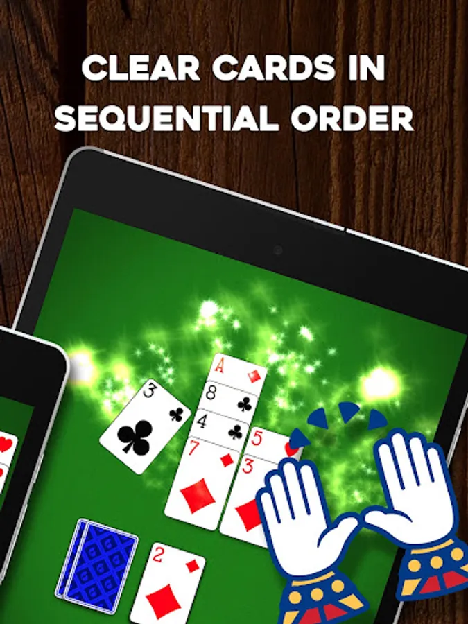 The objective is simple: clear the cards off the table by tapping on a card that is one value higher or lower than the current card in play. It’s just like TriPeaks Solitaire, except in Crown Solitaire, all the cards are face-up! Think of Crown Solitaire as the perfect combination between TriPeaks and FreeCell.
