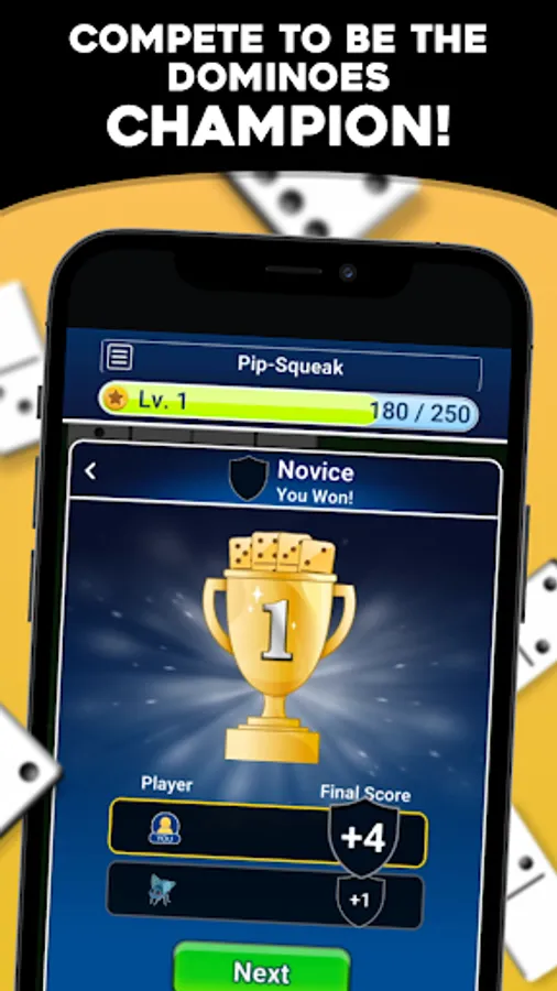 Dominoes: Classic Tile Game has a ranked leaderboard that showcases how hard you've worked to beat the best opponents. Hone your skills and achieve the first place rank.