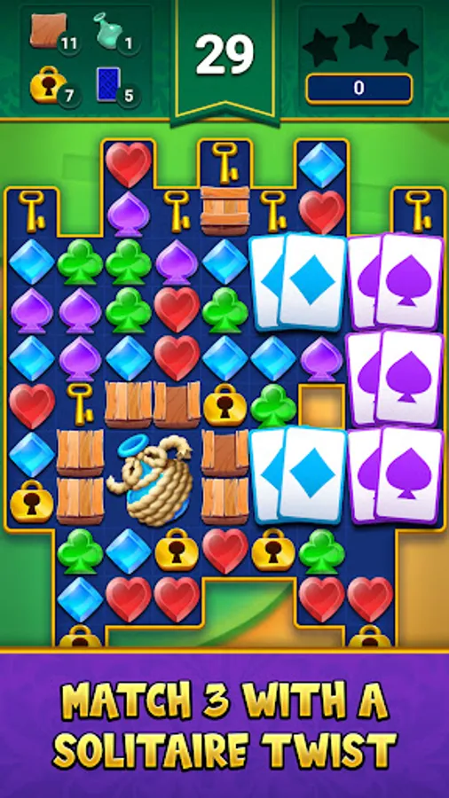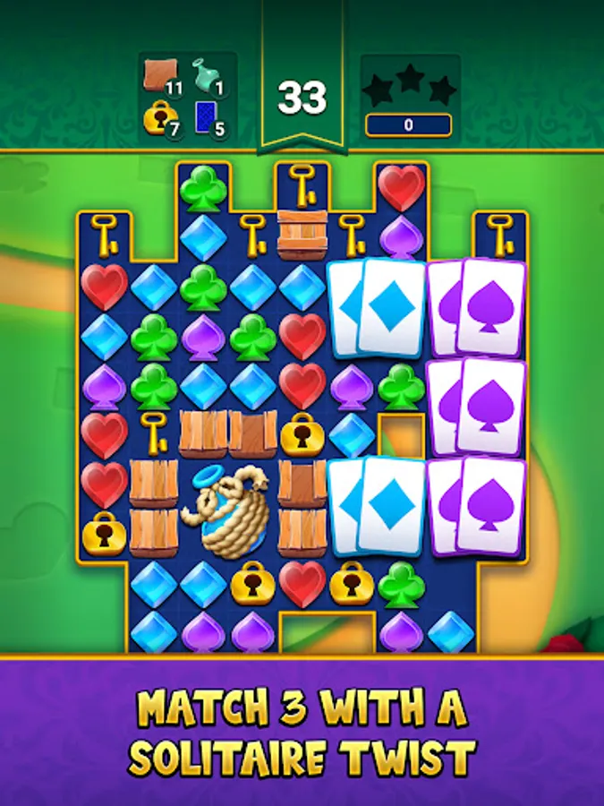 - CLASSIC match 3 gameplay with a BELOVED SOLITAIRE theme!